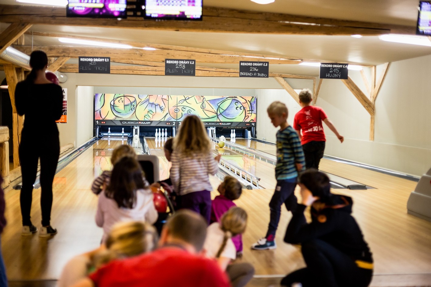 Součástí bowling baru v Centru Walzel je i dětský bowling, který umožňuje na všech drahách nastavit mantinely pro děti. To znamená, že koule dětem nepadá do žlábku a vždy doputuje až do cíle – ke kuželkám. Děti si tak hru užívají. Pro děti jsou také připraveny i lehké koule, se kterými se jim pohodlně hází. Jsme tu pro Vás za jakéhokoliv počasí a pokud Vás už bowling nebude bavit, můžete využít další atrakce v Centru Walzel.