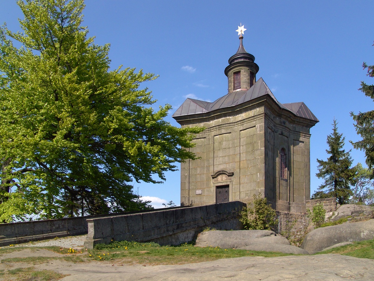 - Kaple Panny Marie Sněžné na Hvězdě – barokní kaple se nachází v místech, kde kdysi stával kříž s pozlacenou hvězdou. Její jedinečnost spočívá ve výstavbě. Půdorys kaple má tvar hvězdy. Špici věžičky zdobí zlatá hvězda. Poblíž kaple se nachází dřevěná turistická chata Hvězda, kterou hlídají ochočená divoká prasátka.