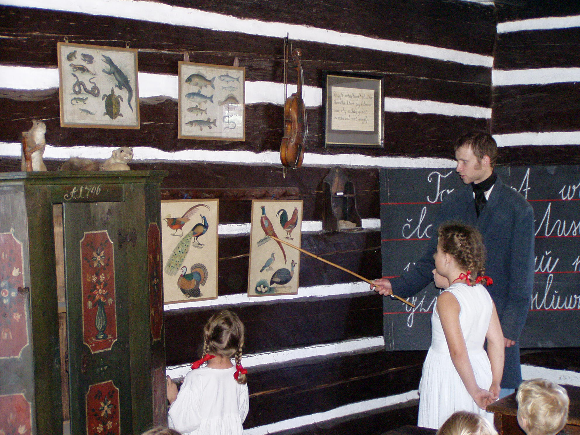 Przyjdźcie zobaczyć, jak wyglądała klasa w XIX wiecznej szkole, w której dzieci musiały siedzieć na twardych drewnianych ławkach, używały do pisania kałamarzy a pan nauczyciel nakazywał większym dzieciom pisać samemu, młodszych w tym czasie uczył pisania liter. Wyobraźcie sobie, że w takiej ławce siedziała także największa czeska pisarka Bożena Nemcova, która musiała chodzić codziennie pieszo z Ratibořic, gdzie mieszkała, do Czeskiej Skalicy, by nauczyć się czytać i pisać. Klasa ta ożywa co roku na początku czerwca w związku z tradycyjną imprezą "Szkoła Basi - Kiedy Bożena Nemcova chodziła do szkoły."